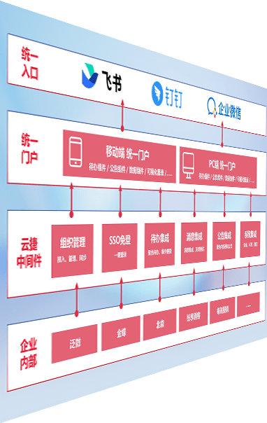 对协作平台提供支持服务,,支持企业应用与协作平台对接,,包含组织同步、、消息集成、、、待办集成等。。支持目前主流的协作平台:钉钉、、企微和飞书。。